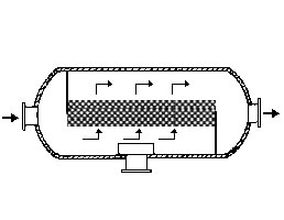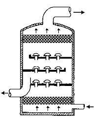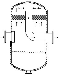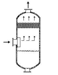 在通常的化工操作中所碰到的氣體中分散液滴的直徑約在0.1~5000μm。一般粒徑在100μm以上的顆粒因沉降速度較快,其分離問題很容易解決。通常直徑大于50μm的液滴,可用重力沉降法分離;5μm以上的液滴可用慣性碰撞及離心分離法;對于更小的細霧則要設法使其聚集形成較大顆粒,或用纖維過濾器及靜電除霧器。絲網除沫器,其主要用于分離直徑大于3μm~5μm的液滴,工作原理如右圖所示。當帶有霧沫的氣體以一定的速度上升,通過架在格柵上的金屬絲網時,由于霧沫上升的慣性作用,使得霧沫與細絲碰撞而粘附在細絲的表面上。細絲表面上的霧沫進一步擴散及霧沫本身的重力沉降,使霧沫形成較大的液滴沿著細絲流至它的交織處。由于細絲的可濕性、液體的表面張力及細絲的毛細管作用,使得液滴越來越大,直至其自身的重力超過氣體上升的浮力和液體表面張力的合力時,就被分離而下落,流至容器的下游設備中。只要操作氣速等條件選擇得當,氣體通過絲網除沫器后,其除沫效率可達到97%以上,可以達到完全去除霧沫的目的。絲網除沫器(除霧器)用于分離塔中氣體夾帶的液滴,以保證有傳質效率,降低有價值的物料損失和改善塔后壓縮機的操作,一般多在塔頂設置絲網除沫器。可有效去除3--5um的霧滴,塔盤間若設置除沫器,不僅可保證塔盤的傳質效率,還可以減小板間距。所以絲網除沫器主要用于氣液分離。亦可為空氣過濾器用于氣體分離。此外,除沫器絲網還可作為儀表工業(yè)中各類儀表的緩沖器,以防止電波干擾的電子屏蔽器等。在化工工藝過程中,各種氣液相接觸設備的氣體離開設備時往往夾帶著不少液滴,如塔類設備、蒸發(fā)器等。一般要求把氣體中夾帶的液滴分離出來,以免影響氣體的品質或下道工序的操作。從氣體分離液滴或霧沫的機理有重力下降、慣性碰撞、離心分離、布朗運動的擴散沉積和靜電吸引。絲網除沫器是屬于慣性碰撞除沫中的典型產品,是一種高效的氣液分離設備。它具有除沫效率高、結構簡單、空隙率大、壓力降小、重量輕,安裝、操作、維修方便等特點。當氣體自下而上通過絲網除沫器時,由于慣性作用與絲網表面碰撞,霧沫隨即在細絲表面聚集而擴張,不斷變大的液滴由于重量產生的重力超過氣速和液體表面的張力的合力時,液滴就下落。工業(yè)上常用于塔器、蒸發(fā)器和分離器等。